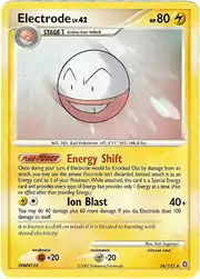 Electrode (Japanese: マルマイン Marumine) is a Lightning-type Stage 1 Pokémon card. It is part of the Secret Wonders expansion.