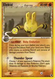 Elekid δ (Japanese: エレキッド δ Elekid δ) is a Fighting-type Basic Pokémon card. It is part of the EX Dragon Frontiers expansion.