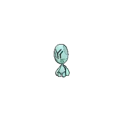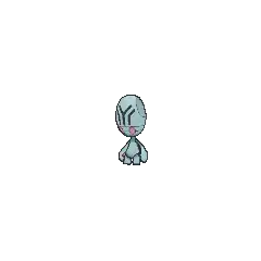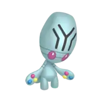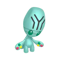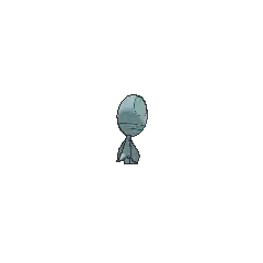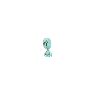 Elgyem is a light blue extraterrestrial Pokémon with an oblong head with depressions on either side. It has black, symmetrical lines going down the front of its head. On the front of its head are shiny, green button-like eyes. Its hands have three finger-like digits: one red, one green, and one yellow. It has short, stubby legs and a small tail. Elgyem controls incredible psychic power, which it uses to squeeze its opponent's brains, causing them headaches. Its origin is said to be linked with a UFO crash site that appeared 50 years ago.