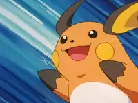 When Team Rocket showed up to capture the Mareep, it launched a Thunderbolt, though it was merely absorbed by Team Rocket's special absorption panel. It tried again, and this time the panel shorted circuits and blowed up Team Rocket's balloon, but it hurt Raichu. The next day, Raichu was in the audience of the Mareep Festival, cheering for Mary and her Mareep, Fluffy. Raichu's only known move is Thunderbolt. | ||