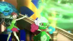 It was used again during the first round of the Gloire City Master Class Pokémon Showcase in Master Class Is in Session!. They were eliminated, however. Roserade's only known move is Leaf Storm. | ||