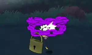 When the opponent's Trainer throws an item at the opponent, Weavile pulls out one of its feathers from its crown and throws it at the item. The feather goes right through the item and pins it to the floor. | ||
