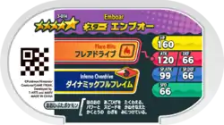 Emboar (Japanese: エンブオー Enbuoh) is a Grade 5 Pokémon Mezastar tag. It is part of the third set.