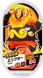 Emboar (Japanese: エンブオー Enbuoh) is a Grade 4 Pokémon Mezastar tag. It is part of the third set.