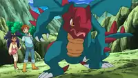 | Ash and friends encountered Druddigon when it came out of hiding and fired Focus Blast at them. Iris discovered that it was upset because it had a rope wrapped around its ankle. She managed to calm it down and untied the rope. Its Trainer, Emmy explained that she was trying to teach it Draco Meteor and Iris suggested it should battle to gain some experience. It battled Ash's Tepig and came out victorious. After that, Team Rocket captured it, as well as Pikachu and Axew. But it managed to escape thanks to Axew's Dragon Rage. To protect Emmy from Team Rocket, Druddigon mastered Draco Meteor and knocked out James's Yamask.