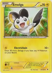 Emolga (Japanese: エモンガ Emonga) is a Lightning-type Basic Pokémon card. It is part of the Noble Victories expansion.