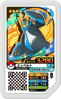 Empoleon (Japanese: エンペルト Emperte) is a Grade 3 Pokémon Ga-Olé disk. It is part of the fourth Grand Rush set.