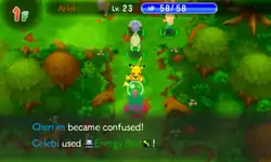 In Explorers of Time, Darkness and Sky, Energy Ball has 16 base power, 11 PP and 88% accuracy. The attack travels up to 10 tiles away and hits the first Pokémon it encounters, ally or enemy, possibly lowering their Special Defense by one stage.
