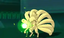 Ninetales fires an orb of light green energy at the opponent in front of its body. | ||