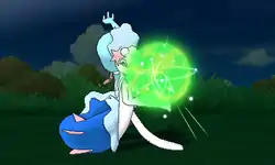Gothitelle puts its hands together in front of it and a light green orb of energy forms in between them. As the orb grows bigger, Gothitelle crosses its arms behind the orb, then opens them up like a 'T', firing the orb at the opponent. | ||