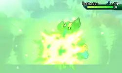 Grovyle puts its hands together and forms a green ball of energy in between them. Grovyle then brings its hands forward and fires the ball at the opponent. | ||