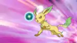 The leaf on Leafeon's head glow white and it forms a green ball of energy in front of its mouth. It then fires the ball at the opponent. | ||