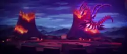 In Sword and Shield: "From Here to Eternatus!", Leon entered the Energy Plant just as the reactor core burst apart to reveal Eternatus. Before Leon could start battling it, it escaped through the roof and into the Hammerlocke Stadium battlefield above, prompting Leon to follow.