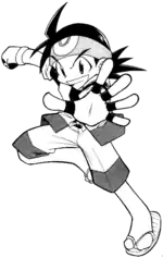 Enta is hyperactive, and his clothes resemble a miniature version of Brendan's from Pokémon Emerald.