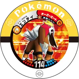 Entei (Japanese: エンテイ Entei) is a Pokémon Battrio puck. It is part of the Decisive Battle! Kyogre and Groudon expansion.