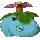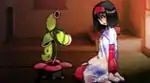 Erika and an ikebana arrangement of Bellsprout and evolutions in a Vileplume-shaped planter |
