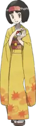 - In Erika's HeartGold and SoulSilver artwork, the heart-shaped crest from the HeartGold logo can be seen in her hairband and obi.