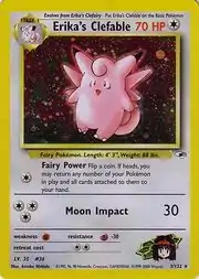 Erika's Clefable (Japanese: エリカのピクシー Erika's Pixy) is a Colorless-type Stage 1 Pokémon card. It is part of the Gym Heroes expansion.