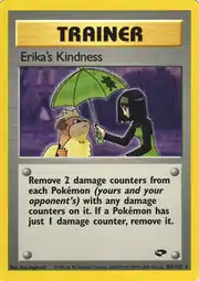 Erika's Kindness (Japanese: エリカの親切 Erika's Kindness) is a Trainer card. It is part of the Gym Challenge expansion.
