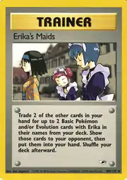 Erika's Maids (Japanese: エリカのお付き Erika's Attendants) is a Trainer card. It was first released as part of the Gym Heroes expansion.