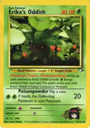 Erika's Oddish (Japanese: エリカのナゾノクサ Erika's Nazonokusa) is a Grass-type Basic Pokémon card. It is part of the Gym Heroes expansion.