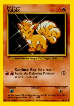 - Vulpix: The 1st Edition, Shadowless, and unlimited prints have their HP printed as "HP 50" instead of "50 HP". This was only corrected in the UK released 1999-2000 4th print run making the corrected version more desirable.