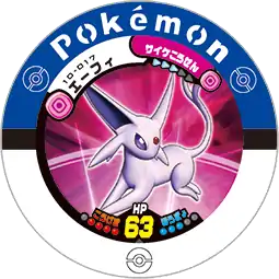 Espeon (Japanese: エーフィ Eifie) is a Pokémon Battrio puck. It is part of the Ho-Oh and Lugia Soar expansion.