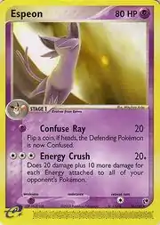 Espeon (Japanese: エーフィ Eifie) is a Psychic-type Stage 1 Pokémon card. It is part of the EX Sandstorm expansion.