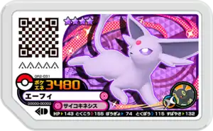 Espeon (Japanese: エーフィ Eifie) is a Grade 4 Pokémon Ga-Olé disk. It is part of the second Grand Rush set.