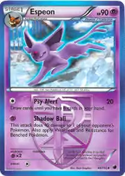 Espeon (Japanese: エーフィ Eifie) is a Psychic-type Stage 1 Pokémon card. It is part of the Plasma Freeze expansion.