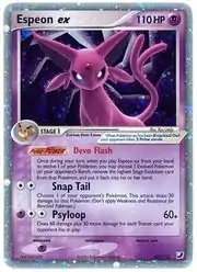 Espeon ex (Japanese: エーフィex Elfie ex) is a Psychic-type Stage 1 Pokémon-ex card. It is part of the EX Unseen Forces expansion.