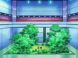 In the anime, the Eterna Gym is modeled like a large indoor garden, complete with trees and grass. Many different kinds of Grass-type Pokémon live there and are taken care of by Gardenia and her helpers. Unlike other Gyms, the Eterna Gym does not have an official battlefield. Instead, Gym battles take place in a large clearing in the middle of the Gym.