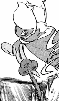 It later appeared during Ash and Gardenia's Gym battle during The Grass Menagerie!, where it was able to outspeed Turtwig's attacks using its high speed and forced Ash to recall it. It then went up against Staravia where Ash was able to blind it using the sunlight and then Staravia was able to knock it out. Cherubi's known moves are Magical Leaf and Solar Beam, and its Ability is Chlorophyll. | ||