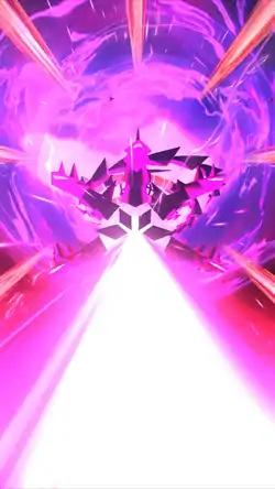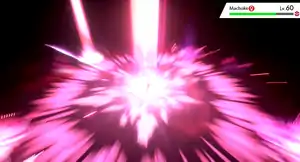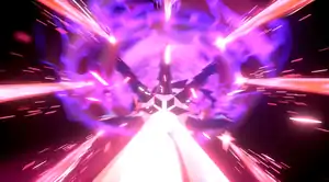 Eternamax Eternatus fires a purple beam of energy from its hand and multiple smaller, similar beams from around its body at the opponent. | ||