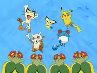 When the Meowth beside Pichu gets shocked