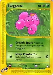 Exeggcute (Japanese: タマタマ Tamatama) is a Grass-type Basic Pokémon card. It is part of the Aquapolis expansion.