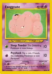 Exeggcute (Japanese: タマタマ Tamatama) is a Psychic-type Basic Pokémon card. It is part of the Neo Destiny expansion.