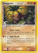 Exeggutor δ (Japanese: ナッシー δ Nassy δ) is a Fighting-type Stage 1 Pokémon card. It is part of the EX Holon Phantoms expansion.