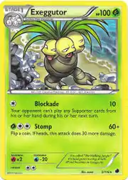 Exeggutor (Japanese: ナッシー Nassy) is a Grass-type Stage 1 Pokémon card. It is part of the Plasma Freeze expansion.