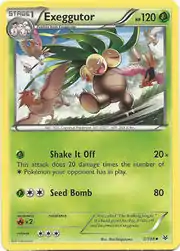 Seed Bomb is a move in the Pokémon games that Exeggutor can learn. This card's Pokédex entry comes from Pokémon Y.