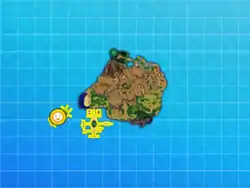 As its name would imply, Exeggutor Island is a small island roughly shaped like an Alolan Exeggutor, where many Exeggcute and Alolan Exeggutor live. Some Exeggutor blend in with the palm trees that mark the island and use them as camouflage. It rains lightly every day from 10:00 AM to 3:59 PM, and strongly from 6:00 PM to 11:59 PM.