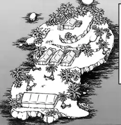 Exeggutor Island first appeared in Madness!! Mother Lusamine!, where the Trial Captains, Island Kahunas, and Aether Foundation were revealed to have formed a front line base there after Lusamine and her Ultra Beasts had taken over Poni Island. When Mina discovered Guzma injured on Poni Island, he was brought to the base to be treated.