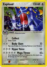 Exploud (Japanese: バクオング Bakuong) is a Colorless-type Stage 2 Pokémon card. It is part of the EX Emerald expansion.