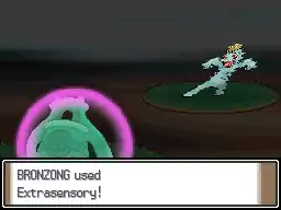 Bronzong's eyes glow brightly and a large burst of energy is released from them at the opponent. | ||