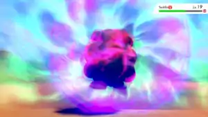 Noctowl's eyes glow gold and it opens its beak, releasing a multicolored circular beam with white crescents around it at the opponent. The beam surrounds the opponent, and Noctowl lifts it into the air and throws it. | ||