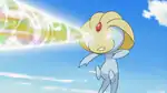 Mesprit's eyes glow gold and it releases a rainbow-colored beam from the gem on its forehead at the opponent. | ||