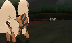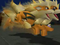 Arcanine Arcanine runs so fast that its legs become a blur, or Arcanine becomes surrounded by white and clear aura as it charges into its opponent at a fast speed.
