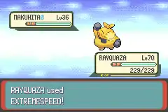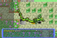 Rayquaza Rayquaza's body becomes surrounded in a green aura and it charges at the opponent at a high speed.