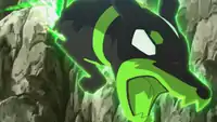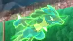 Zygarde Zygarde Complete Forme's body becomes outlined in a light-green color and then it charges at the opponent at a high speed, leaving a green trail behind it.