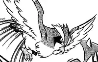 | Falkner sent out Pidgeot as his other Pokémon were weakened from his previous challenger. It went up against Gold's Totodile and lost.